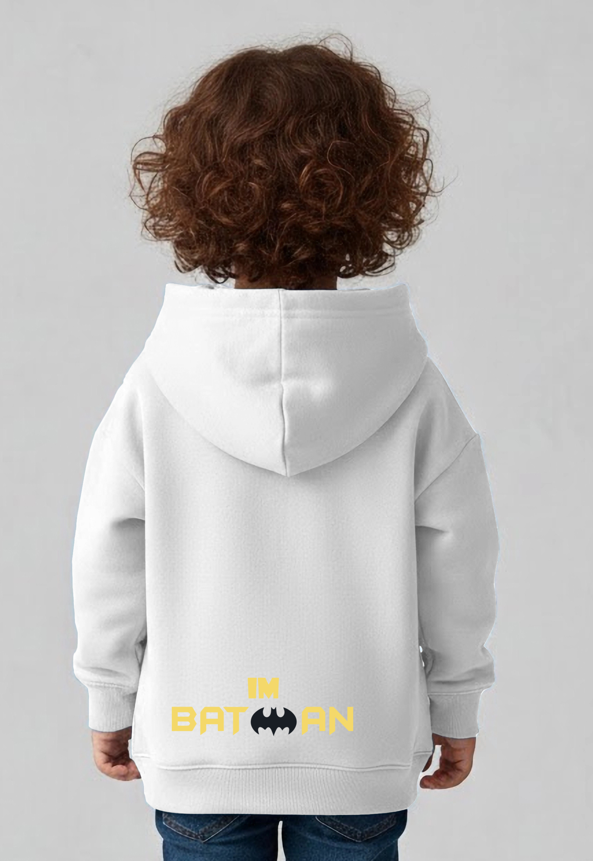 A children's winter hoodie with a strong and bold design inspired by the iconic Batman character, with a heroic drawing that attracts attention and gives a sense of strength and confidence.