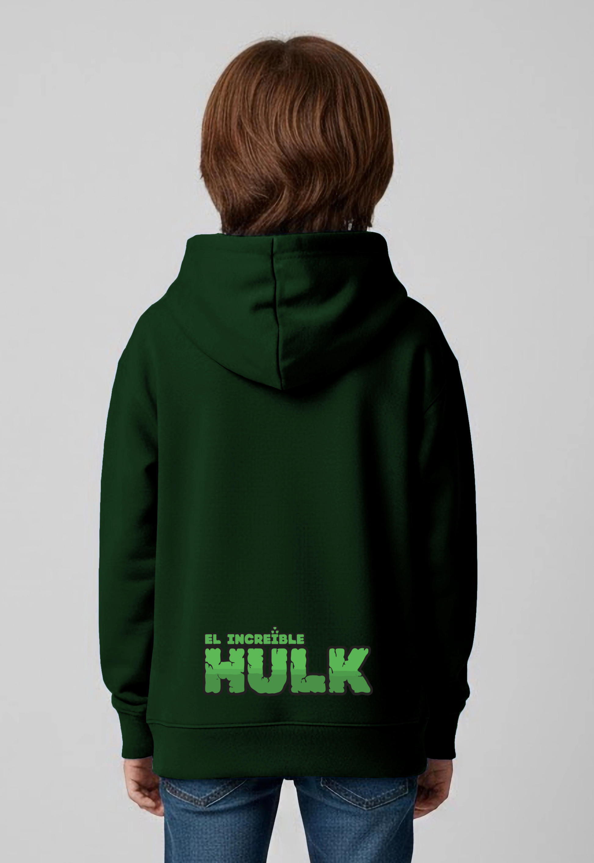 A winter hoodie for children with a strong and bold design inspired by the legendary Hulk character, with a drawing that expresses strength, confidence and a spirit of defiance.