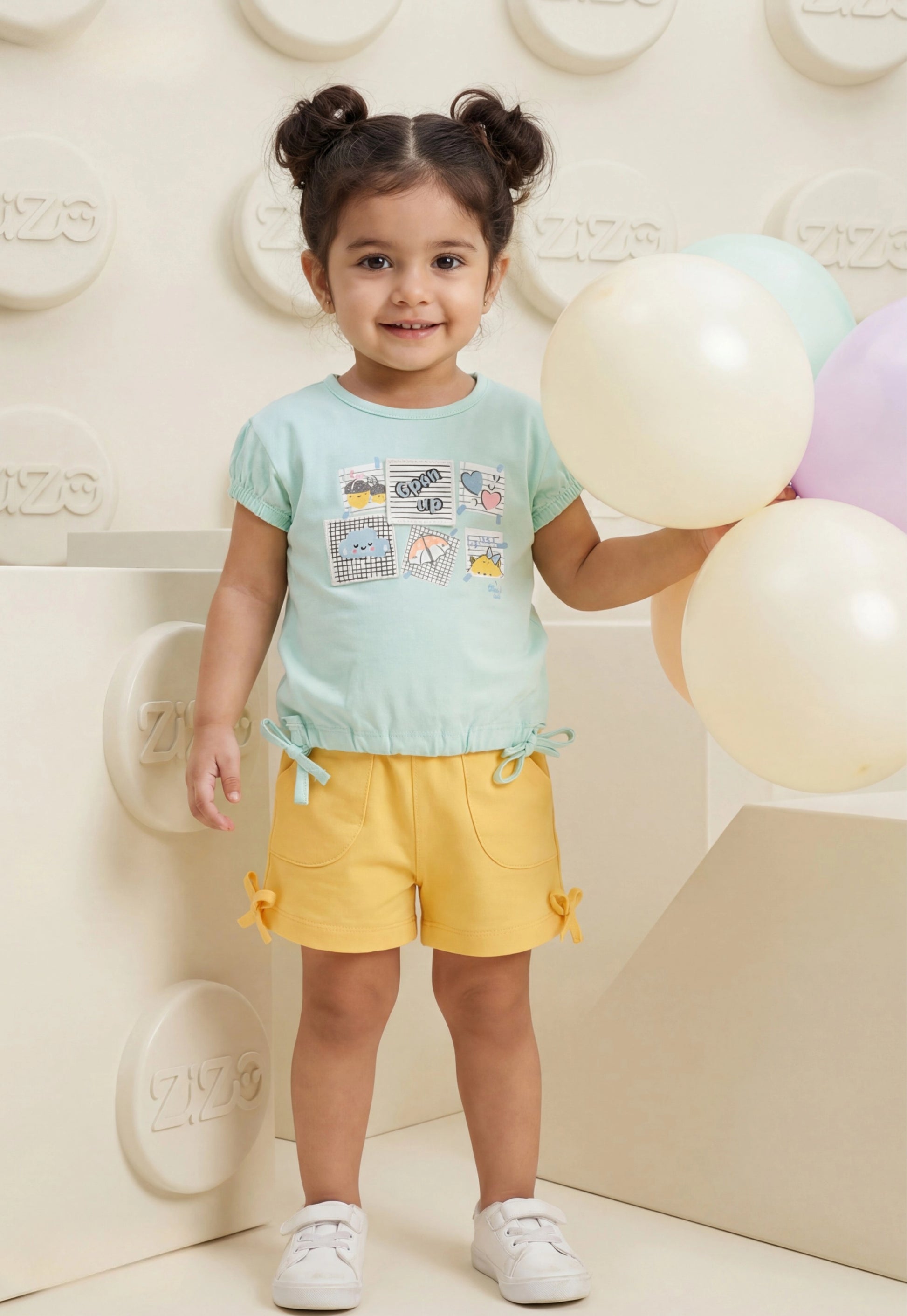 طقم صيفي كيوت ومتكامل – تيشيرت + شورت بإطلالة مبهجة وخفيفة للبنات الصغيرين