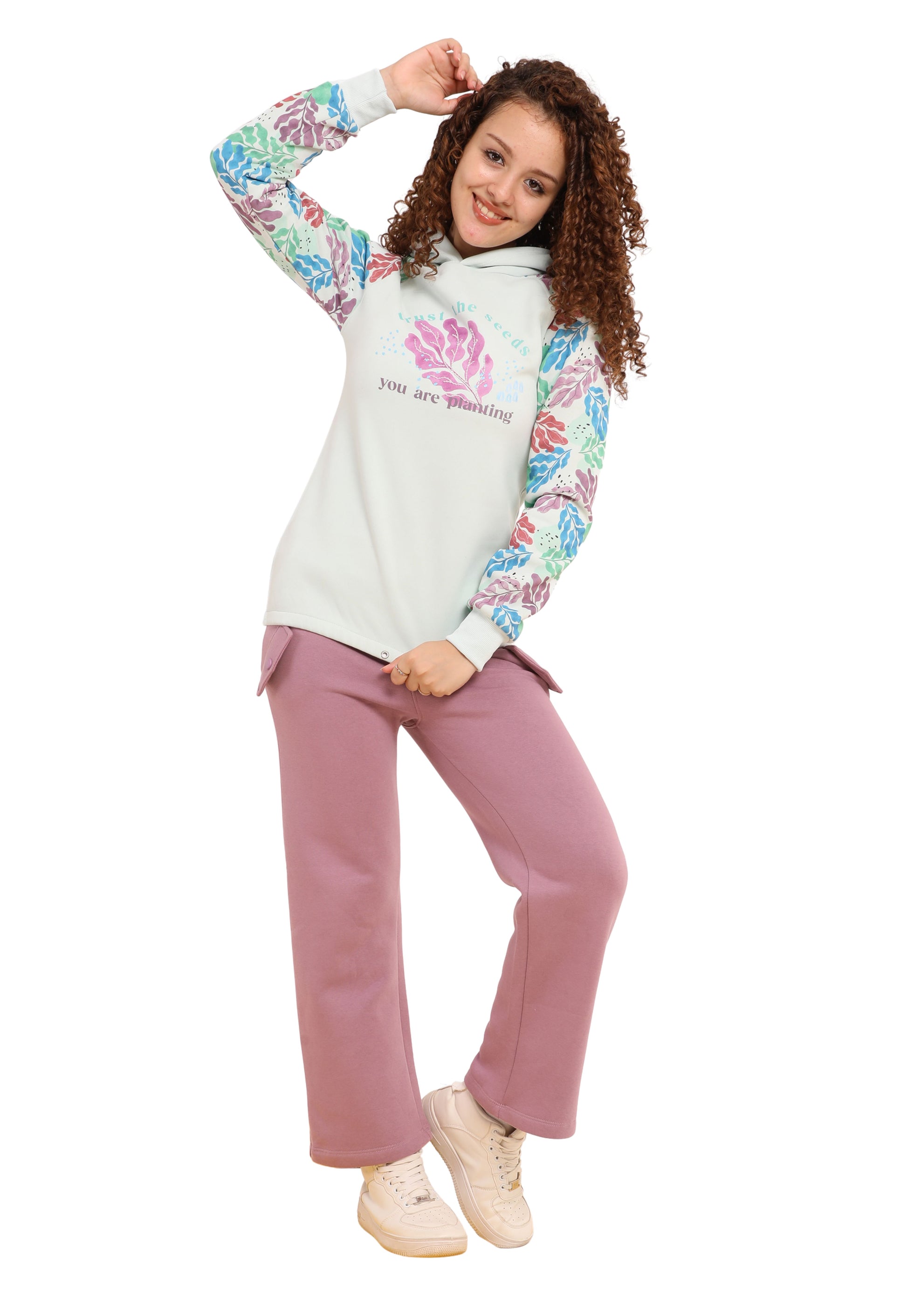 هودي بخامة ناعمة ودافئة برسمة مطبوعة "Trust the seeds you are planting"