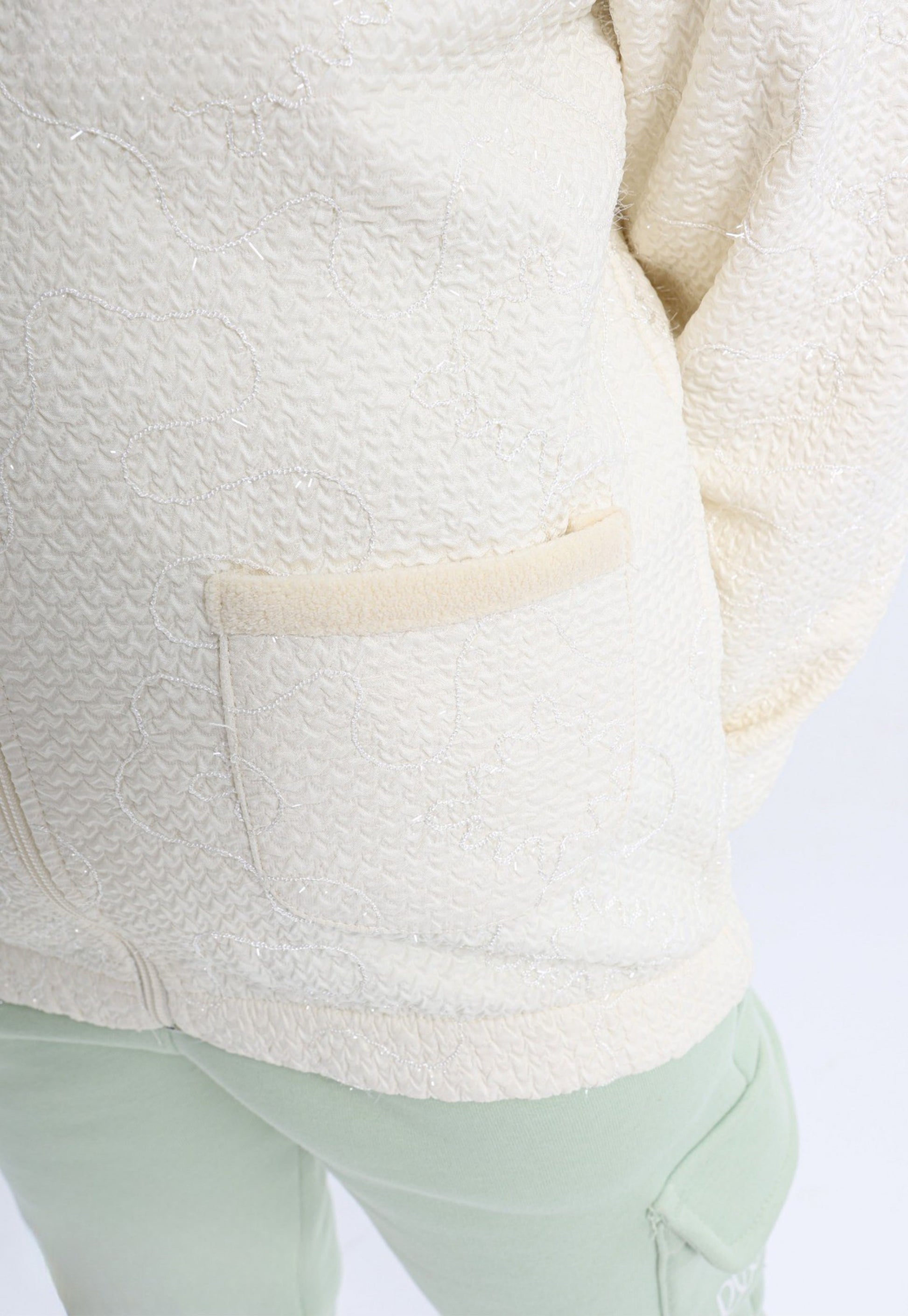 الجاكيت من Textured Fur Embroidery ناعم الملمس يضيف لمسة فخمة وشتوية دافئة.