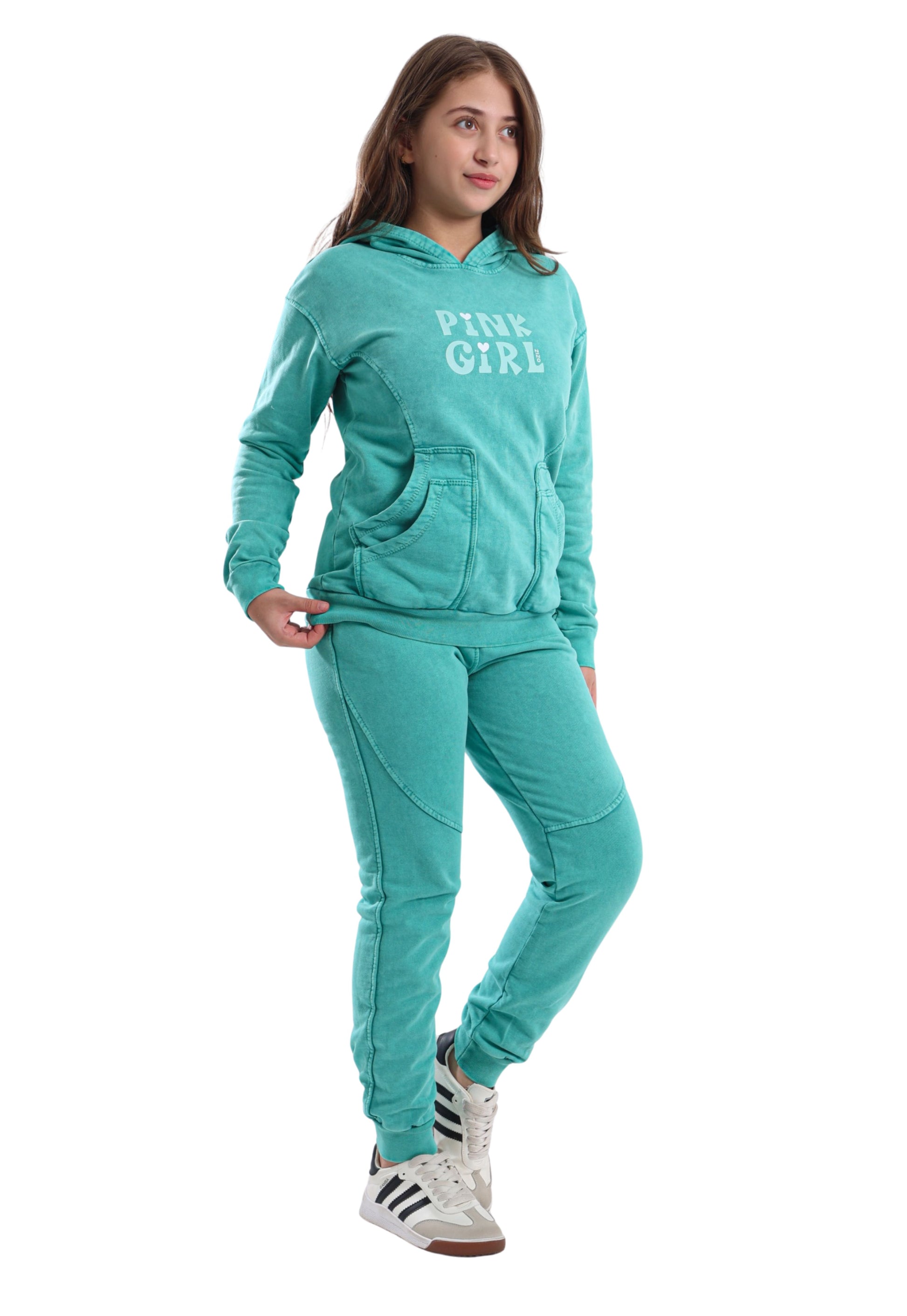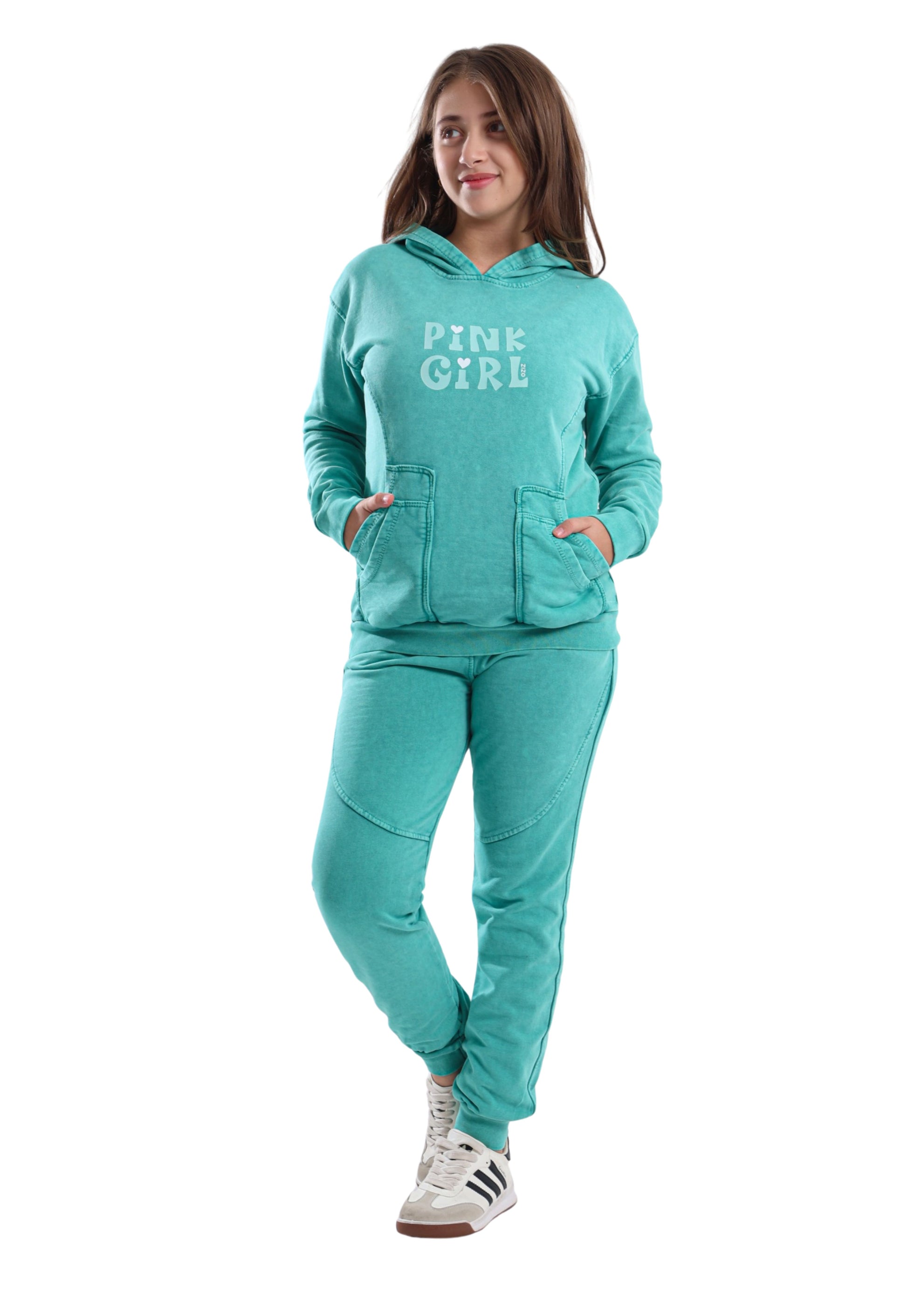 الطقم مكون من هودي بكابيشو وجيوب أمامية عملية وبنطلون بنفس اللون بقصة مريحة بتفاصيل أنيقة.